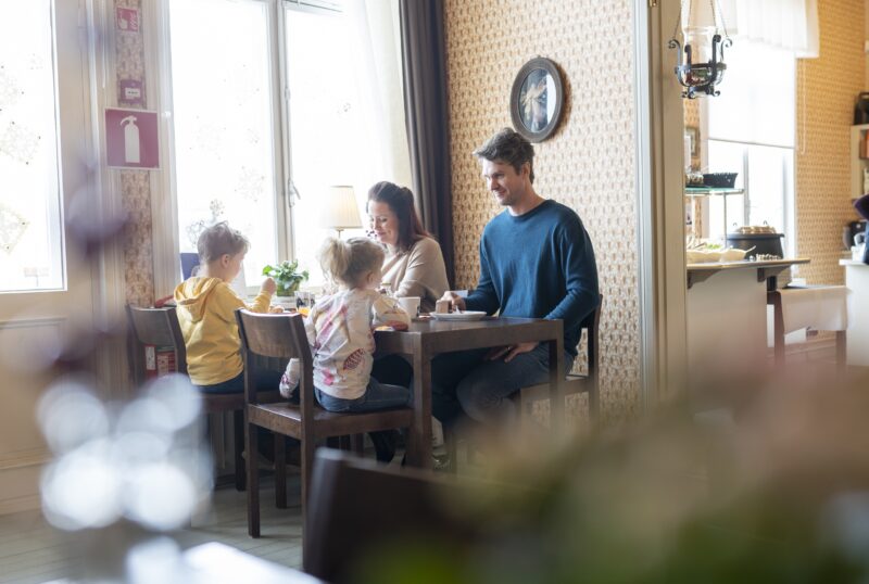 Kahvilaan on esteetön kulku pyörätuolilla tai lastenvaunuilla.